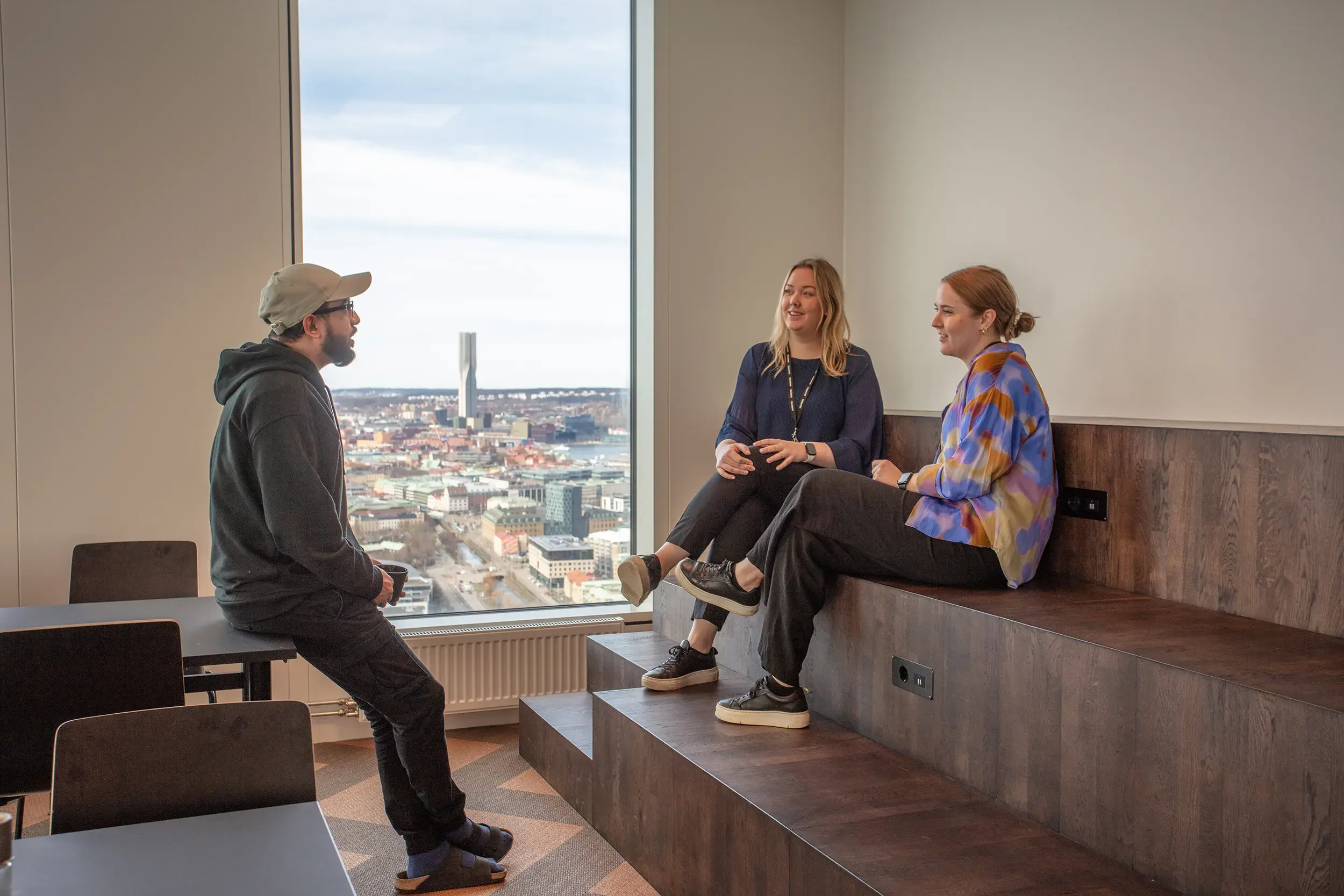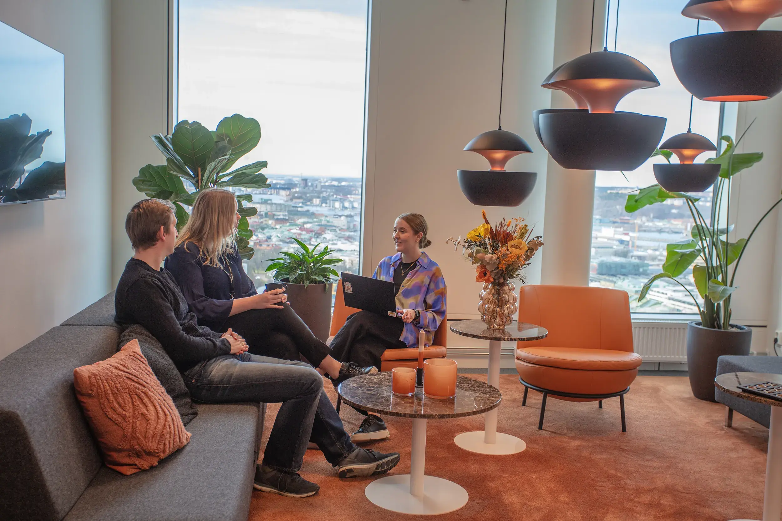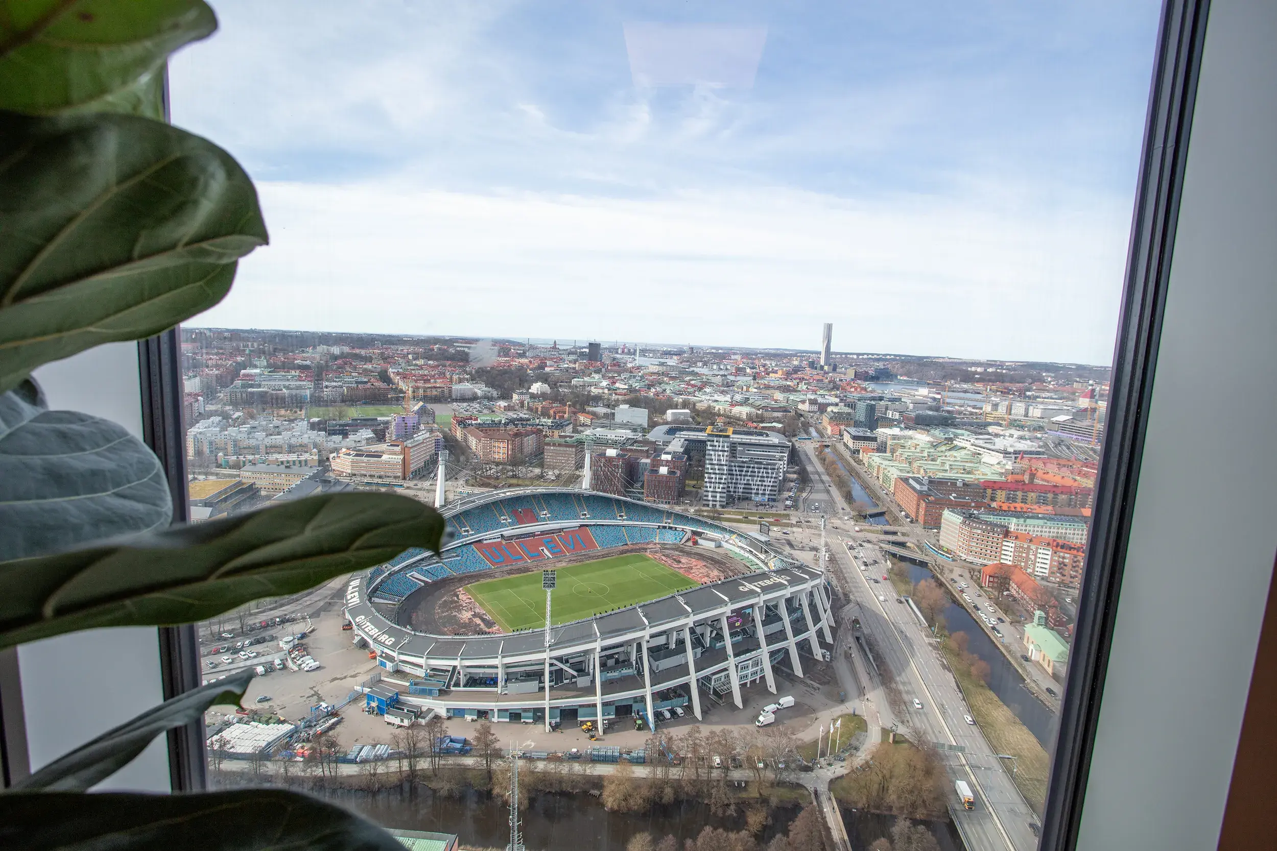 Att sitta här är en premiumupplevelse – för allt man behöver finns här. Lokalerna kunde anpassas precis efter våra behov, så vi slapp huvudvärken som kan komma med att behöva anpassa sig efter lokalen. Sedan är såklart den fina utsikten ett plus.