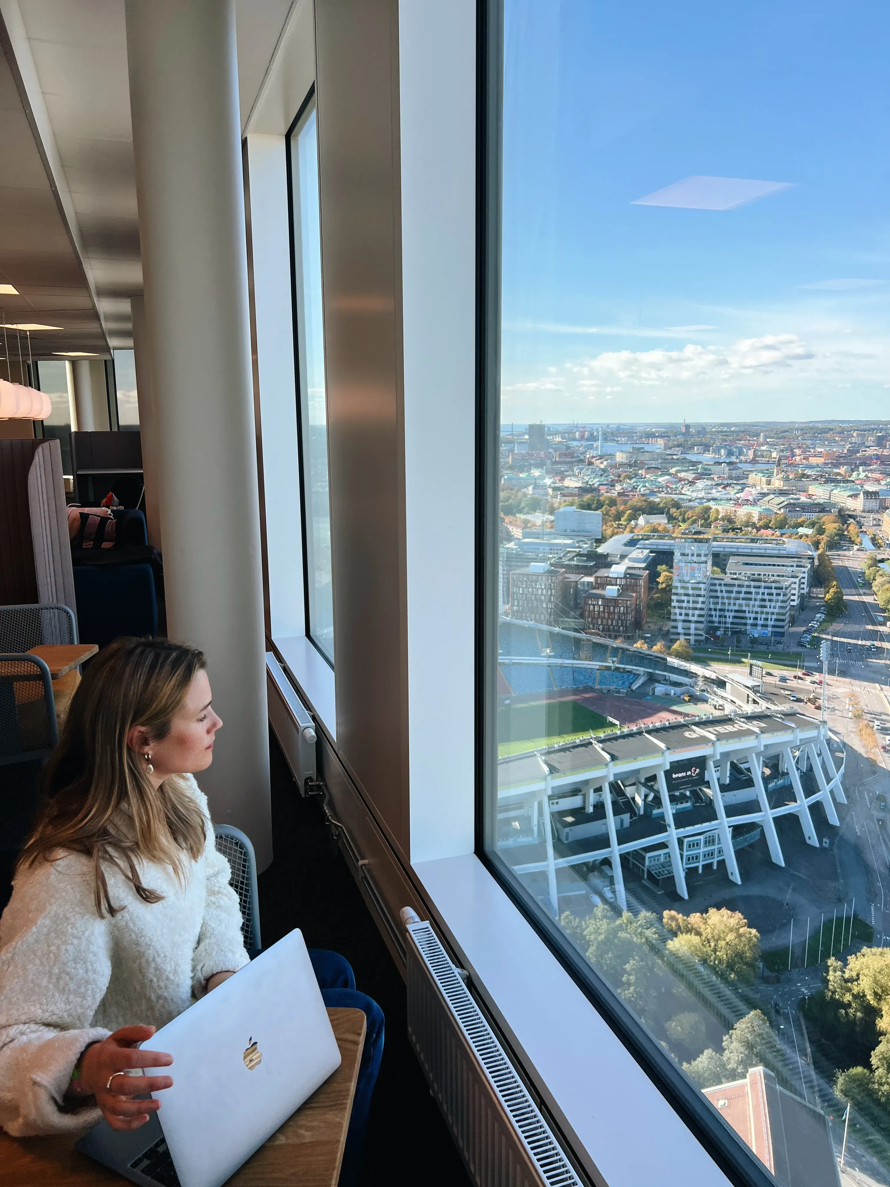 Vill du ha ett kontor långt över det vanliga? Våning 32 har ett fantastiskt ljusinsläpp och utsikt ända till Vinga. Här befinner du dig högt över staden och kan följa dygnets och årstidernas växlingar uppifrån. På våningsplanets 825 kvadratmeter ryms minst 60 arbetsplatser och flera rum för möten eller avskildhet. Här finns ett välutrustat pentry och en fin yta för lunchgemenskap. Våningsplanet går att dela upp om mindre yta eller olika avdelningar önskas. Denna unika miljö ska upplevas på plats – välkommen på visning!